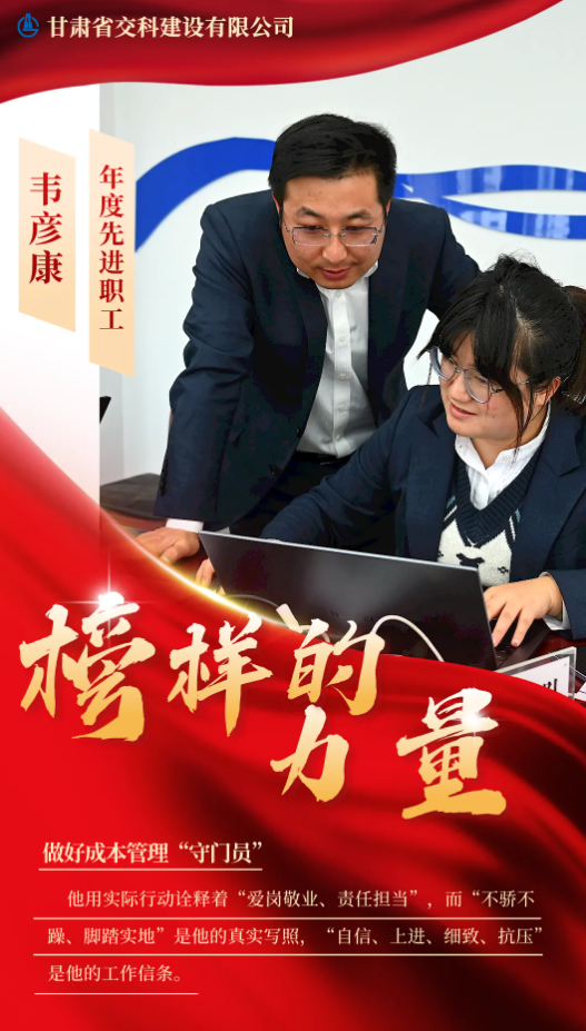 韋彥康,現(xiàn)任甘肅建投交科公司二公司經(jīng)營(yíng)預(yù)算科科長(zhǎng)。工作以來(lái),他勇挑重?fù)?dān),親力親為,全面協(xié)調(diào)完成分公司及項(xiàng)目部經(jīng)營(yíng)預(yù)算工作,與團(tuán)隊(duì)成員共同做好公司成本管理的“守門員”。