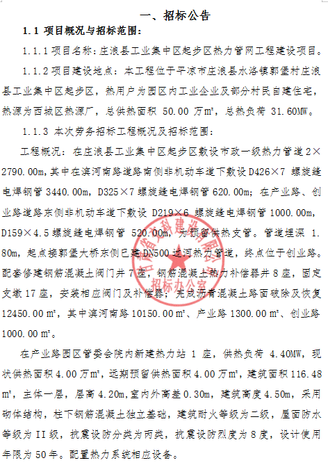 莊浪縣工業(yè)集中區(qū)起步區(qū)熱力管網(wǎng)工程建設(shè)項(xiàng)目