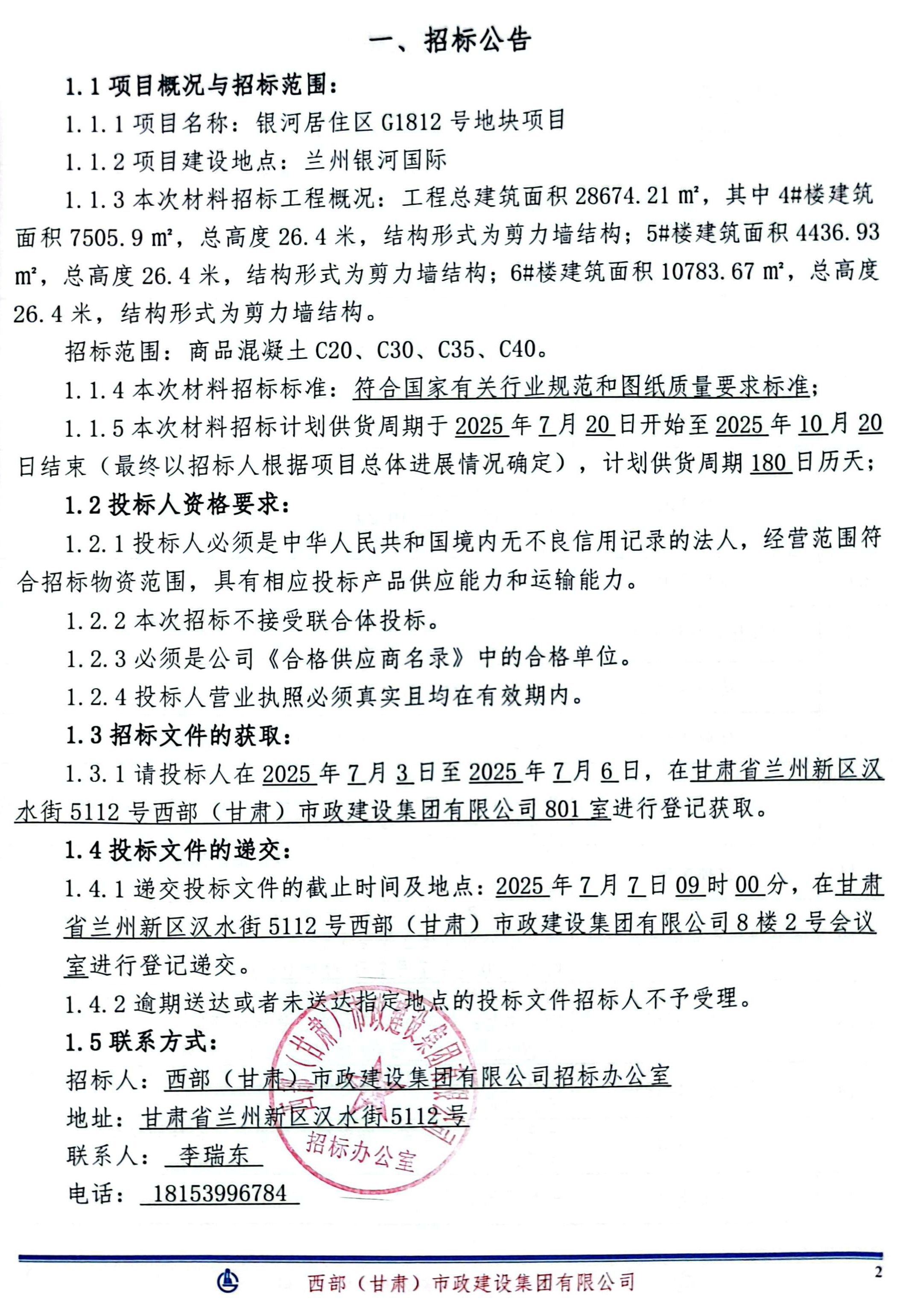 銀河居住區(qū)G1812號地塊項目-混凝土-招標(biāo)公告